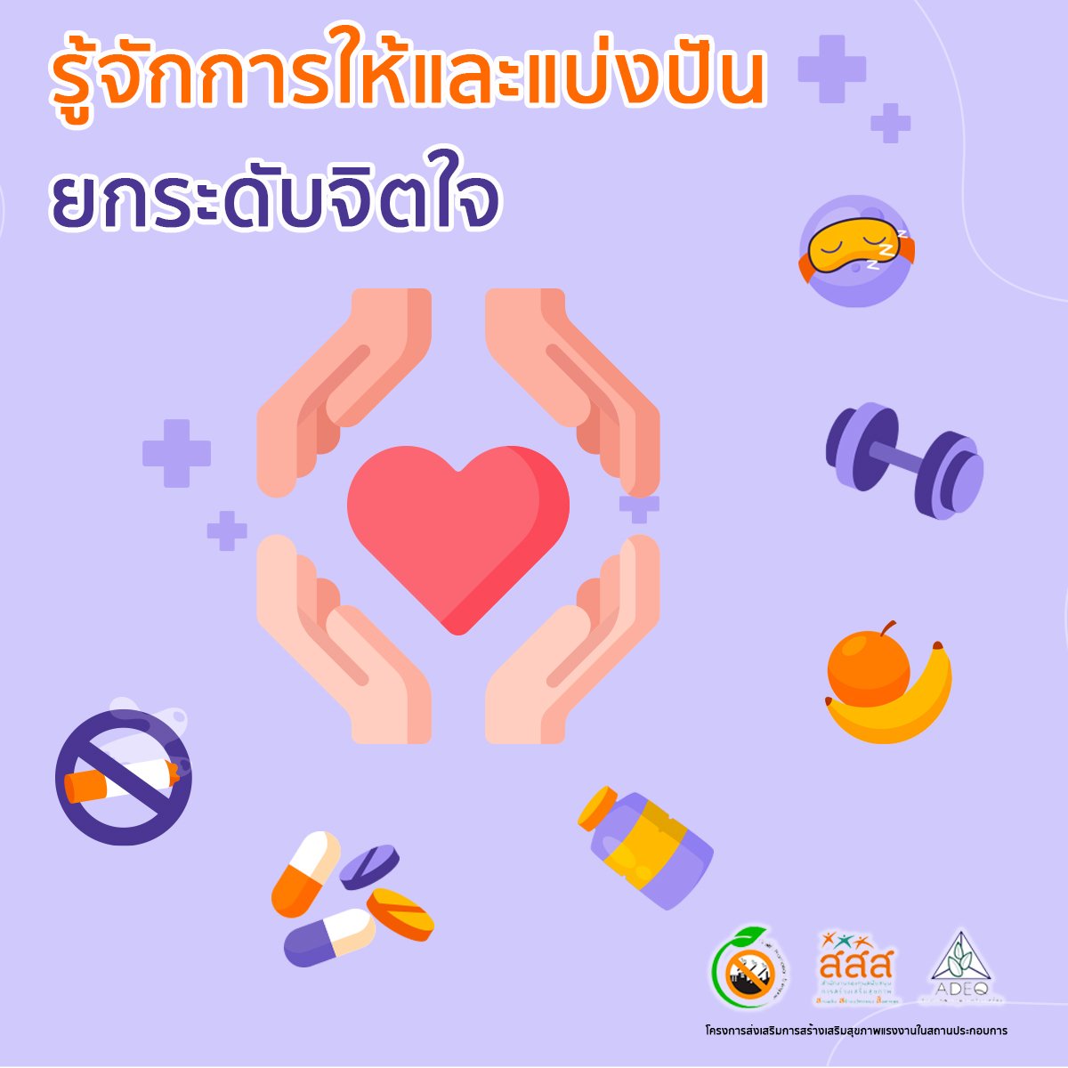 ในยามที่เราทุกข์และจมอยู่กับตัวเอง ลองพาตัวออกไปเจอโลกข้างนอกเราจะพบว่ายังมีคนที่ทุกข์กว่าเราแย่กว่าเราอีกมากมาย จากนั้นเราลองหยิบยื่นสิ่งที่เราพอมีเพื่อเติมไปยังในสิ่งเหล่านั้นขาด แม้จะดูเล็กน้อยสำหรับเราแต่มันยิ่งใหญ่สำหรับคนที่ขาดอยู่ จริงๆแล้วการแบ่งปันนั้นคือการเยียวยาจิตใจตัวเองและเมื่อจิตใจดีขึ้น เรายังมีการแบ่งปันอยู่จะยิ่งกลายเป็นภูมิคุ้มกันทางใจมากขึ้นเรื่อยๆมากพอที่จะป้องกันปัญหาต่างๆที่โอบล้อมเข้ามาได้เป็นอย่างดี
