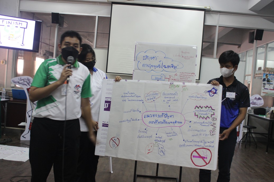 กิจกรรมภายในงานช่วงแรก เป็นกิจกรรมที่เน้นให้เกิดการมีส่วนร่วมของบุคลากรทุกฝ่ายของวิทยาลัยฯ รวมถึงผู้นำนักศึกษาฯ ในการร่วมกันสะท้อนปัญหาที่เกิดขึ้นเกี่ยวกับบุหรี่/บุหรี่ไฟฟ้า จากนั้นตามด้วยกิจกรรมในส่วนการเพิ่มองค์ความรู้ให้ทุกฝ่ายผ่านกิจกรรม ฐานการเรียนรู้ “เครื่องมือและตัวช่วยขับเคลื่อนวิทยาลัยอาชีวะปลอดบุหรี่” อาทิ ฐานระบบบริการช่วยเลิก ฐานตัวช่วยเลิกบุหรี่ ฐานแนวทางการจัดสภาพแวดล้อมและกฎหมายบุหรี่ในวิทยาลัย เป็นต้น ซึ่งบุคลากรและผู้นำนักศึกษาฯให้ความสนใจและร่วมกิจกรรมเป็นอย่างดี และในช่วงท้ายได้มีการสะท้อนปัญหาและหาทางออกร่วมกันในการค้นหาแนวทางการทำงานขับเคลื่อนนำไปสู่การเป็นวิทยาลัยอาชีวะปลอดบุหรี่อย่างเป็นระบบและยั่งยืน