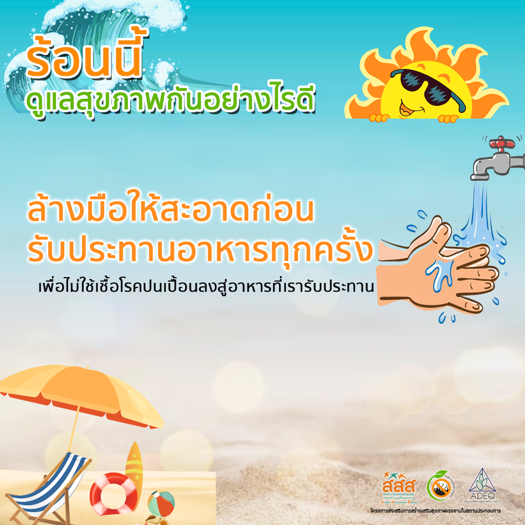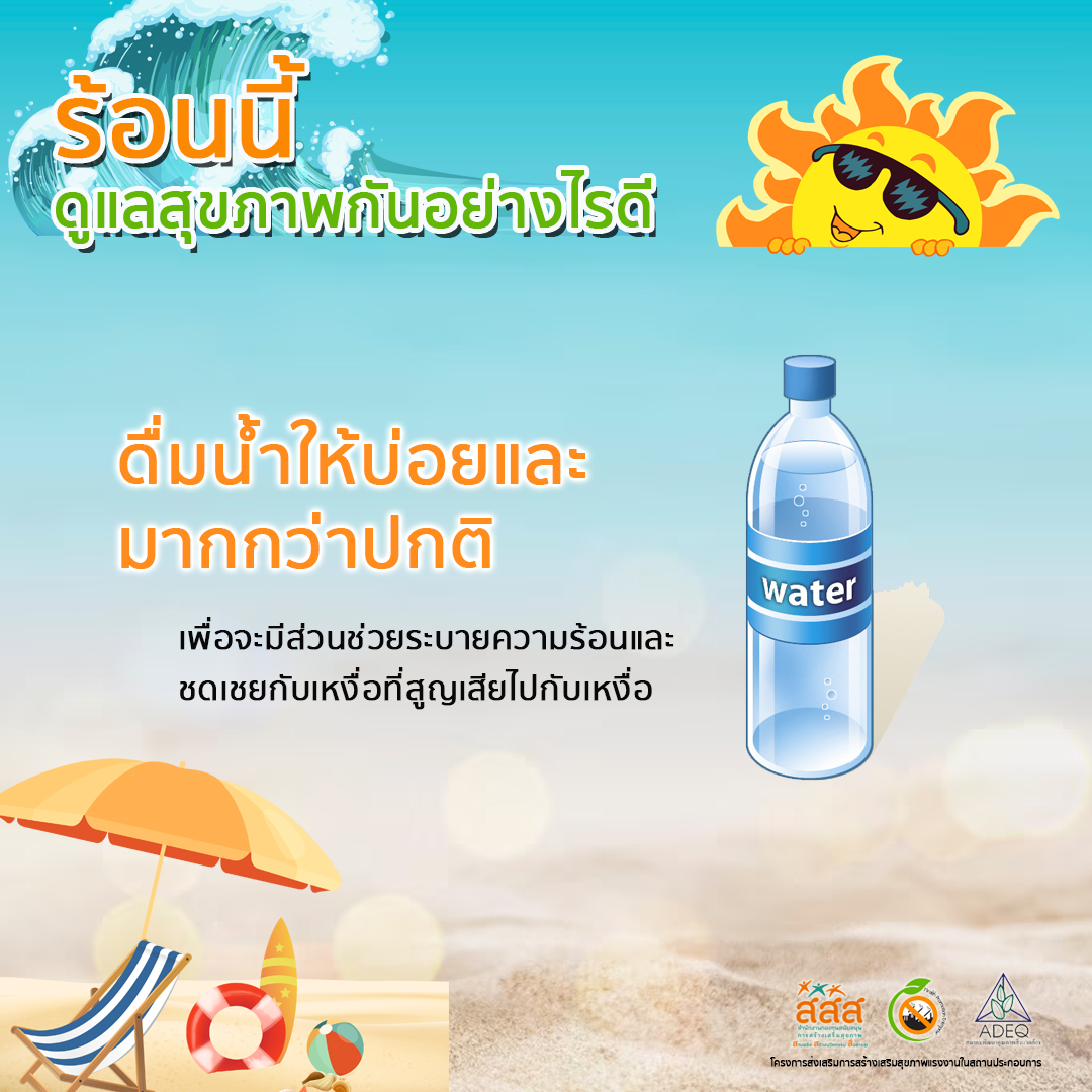 ดูและสุขภาพกายให้ดีแล้วอย่าลืมดูแลสุขภาพใจด้วย หน้าร้อนอาจจะทำให้หงุดหงิดโมโหง่ายอากาศร้อนทำใจให้ร่มๆเย็นๆอย่าร้อนตามอากาศนะครับ ด้วยความปรารถนาดีจากโครงการส่งเสริมการสร้างเสริมสุขภาพแรงงานในสถานประกอบการ ดำเนินการโดยสมาคมพัฒนาคุณภาพสิ่งแวดล้อม รับงบสนับสนุนจากสำนักงานกองทุนสนับสนุนการสร้างเสริมสุขภาพ (สสส.) โอกาสหน้าพบกันใหม่นะครับ