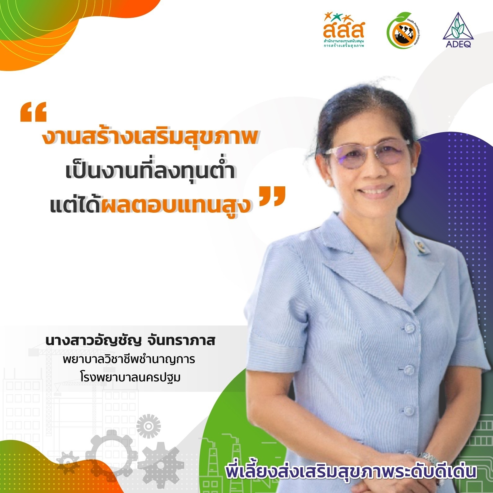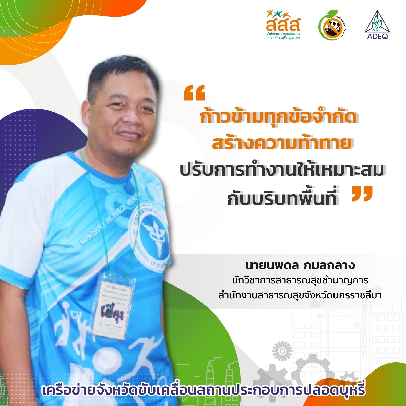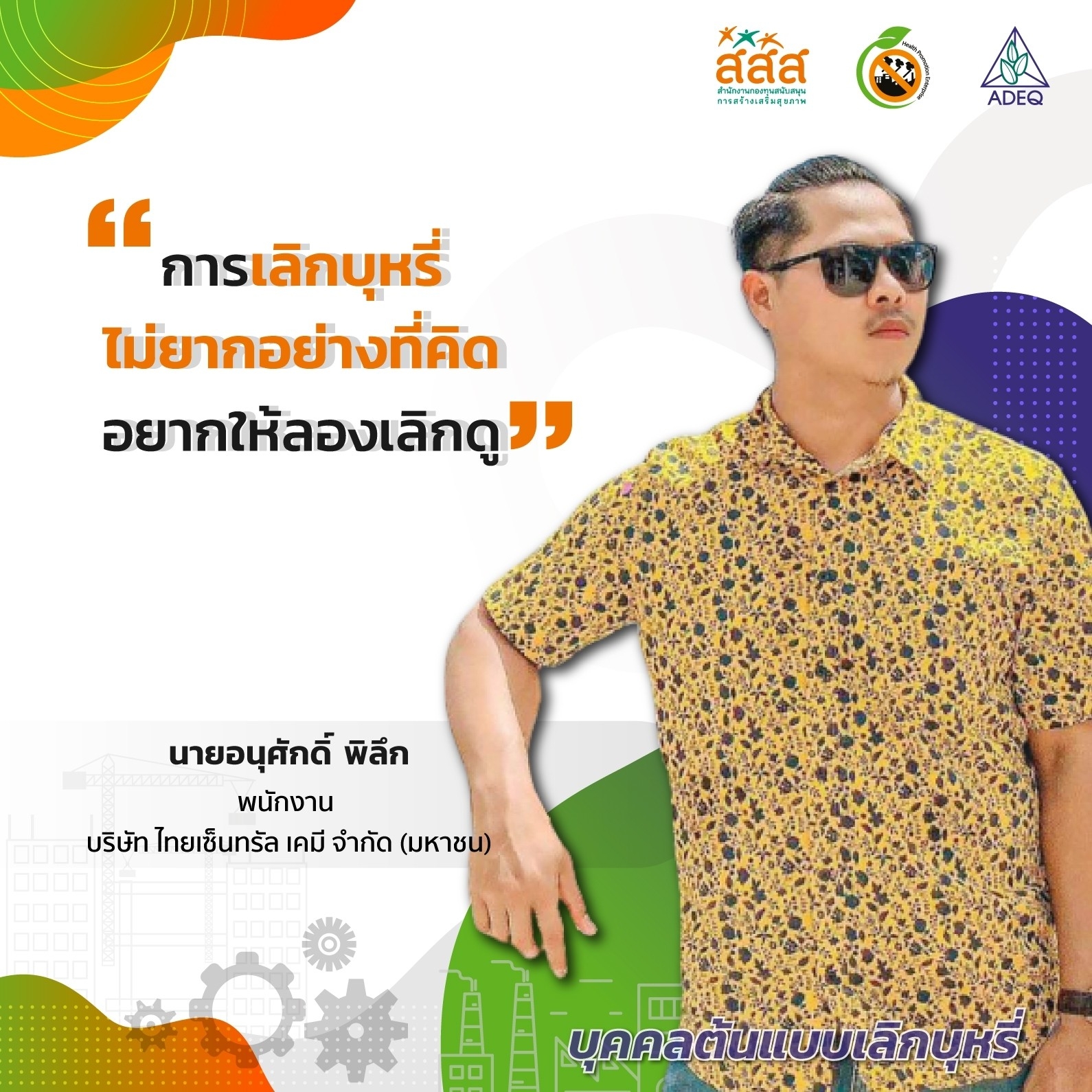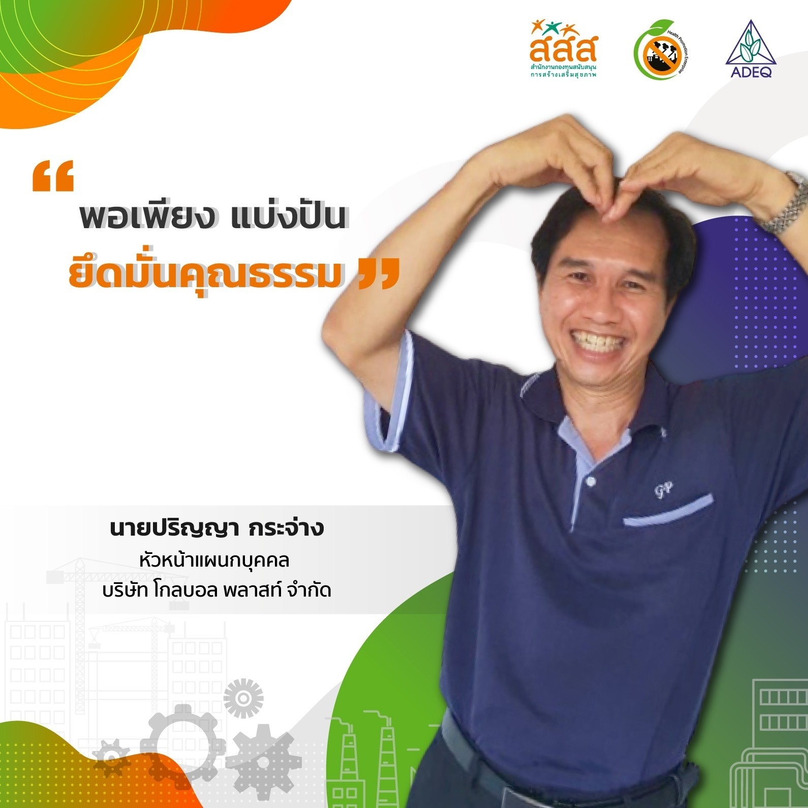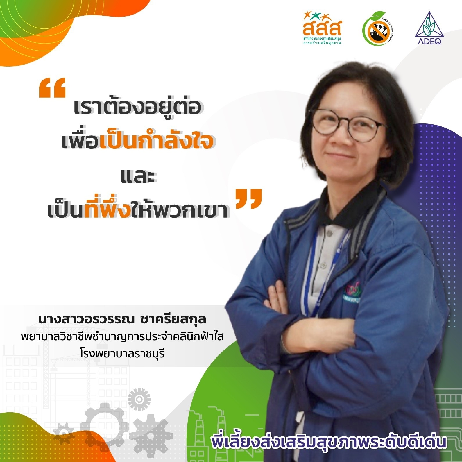 สมาคมพัฒนาคุณภาพสิ่งแวดล้อม ได้ดำเนินงานโครงการส่งเสริมการขยายฐานการสร้างเสริมสุขภาพในสถานประกอบการ ที่รับงบประมาณสนับสนุนจากสำนักงานกองทุนสนับสนุนการสร้างเสริมสุขภาพ (สสส.) เพื่อส่งเสริมและสนับสนุนให้เกิดเครือข่ายขับเคลื่อนสถานประกอบการสร้างเสริมสุขภาพในทั้งในรูปแบบจังหวัด และสถานประกอบการ ด้วยการสานพลังนำกลไกสนับสนุนต่างๆที่เกี่ยวข้องมาร่วมสร้างปัจจัยเอื้อในการขยายฐานการสร้างเสริมสุขภาพในสถานประกอบการ โดยออกแบบให้มีการดำเนินงานที่ประกอบด้วยการทำกิจกรรมต่างๆ ที่สนับสนุนซึ่งกันและกัน ประกอบด้วยกิจกรรมพัฒนาเครือข่ายขับเคลื่อนการสร้างเสริมสุขภาพในสถานประกอบการระดับพื้นที่ และ กิจกรรมส่งเสริมและสนับสนุนการสร้างเสริมสุขภาพในสถานประกอบการ ซึ่งจากการดำเนินงานที่ผ่านมาตั้งแต่ วันที่ 1 ตุลาคม 2561 จนถึงปัจจุบัน ทำให้เกิดการบูรณาการดำเนินงานสร้างเสริมสุขภาพในสถานประกอบการ ทั้งเชิงพื้นที่และกลไกต่างๆ ดังนั้นเพื่อเป็นการสร้างขวัญและกำลังใจให้กับหน่วยงาน องค์กร บุคคลที่ร่วมสนับสนุน ร่วมดำเนินงาน จนประสบความสำเร็จในการคุ้มครองสุขภาพของวัยแรงงานในสถานประกอบการ โครงการฯจึงได้จัดให้มีการประกาศเกียรติคุณเครือข่าย บุคลากรด้านสุขภาพและสถานประกอบการขึ้น ในงานมหกรรมสถานประกอบการสร้างเสริมสุขภาพ: สานพลัง เสริมแรง ขับเคลื่อนสถานประกอบการสร้างเสริมสุขภาพ เพื่อบ่งบอกถึงความสำคัญของการดำเนินงานสร้างเสริมสุขภาพของกลุ่มวัยทำงานในสถานประกอบการให้ประสบความสำเร็จ ยั่งยืน อย่างทั่วถึงต้องอาศัยการทำงานแบบมีส่วนร่วมทั้งภาครัฐ ภาคเอกชน วิชาการและสังคมที่เข้ามาร่วมคิด ร่วมทำ บนเป้าหมายร่วมเดียวกัน