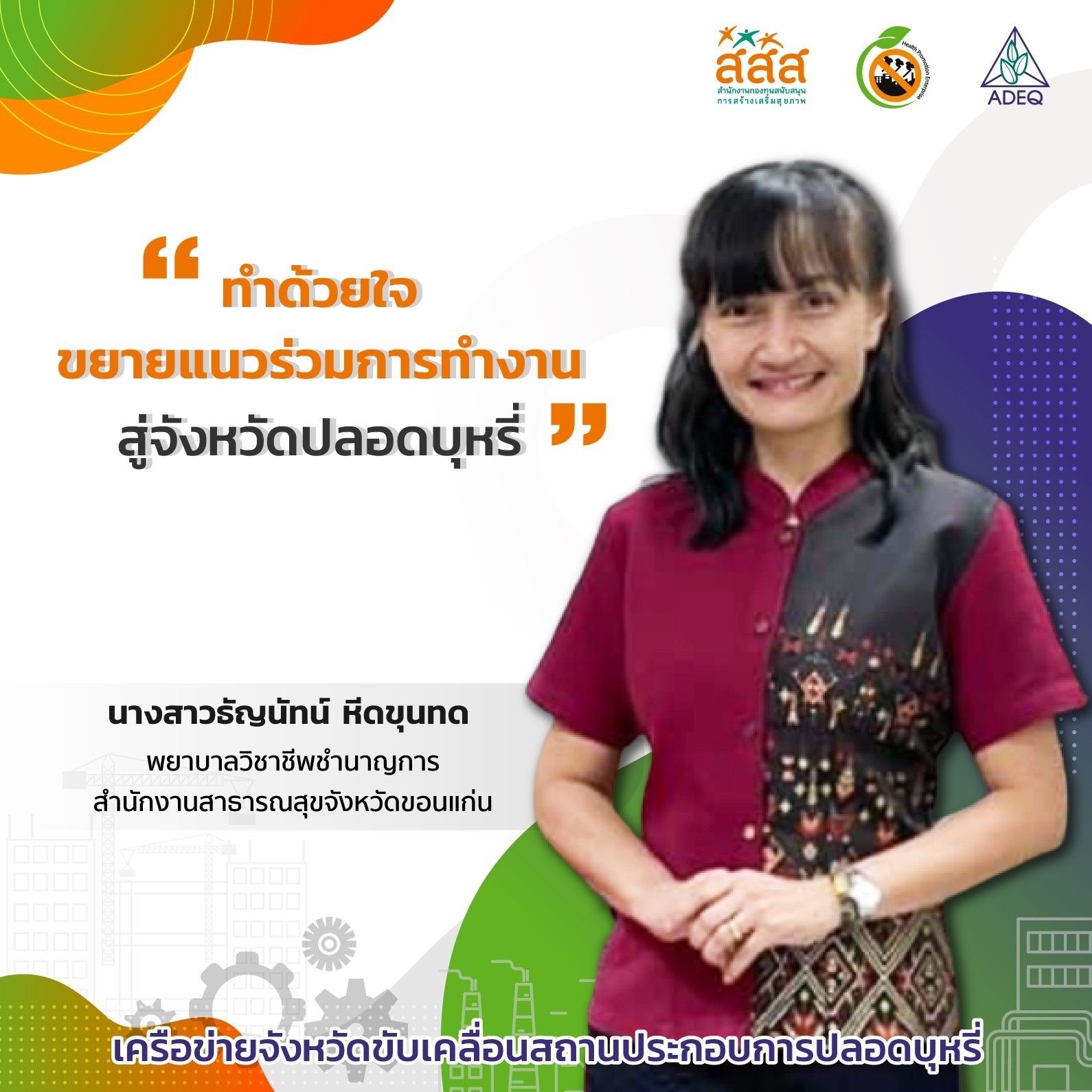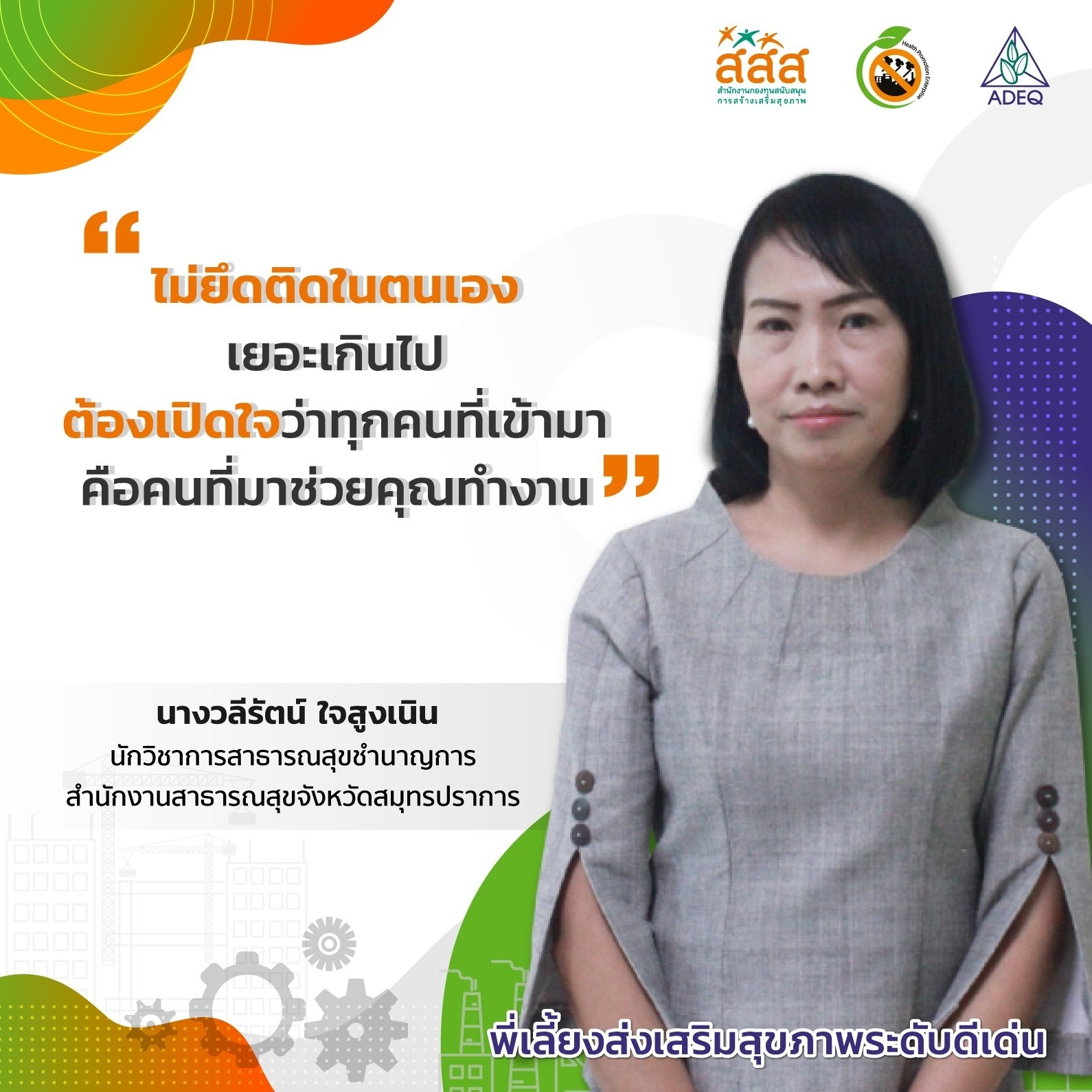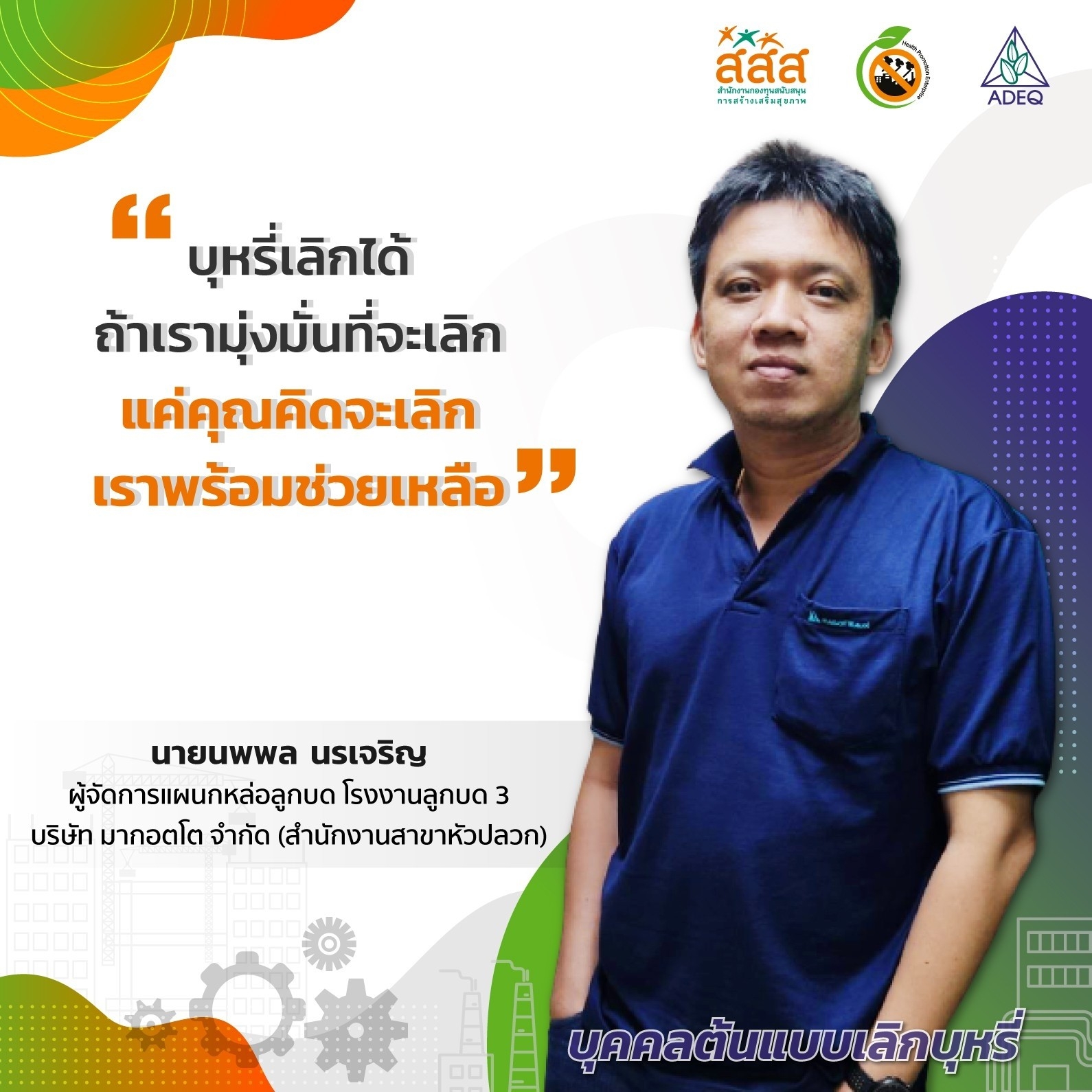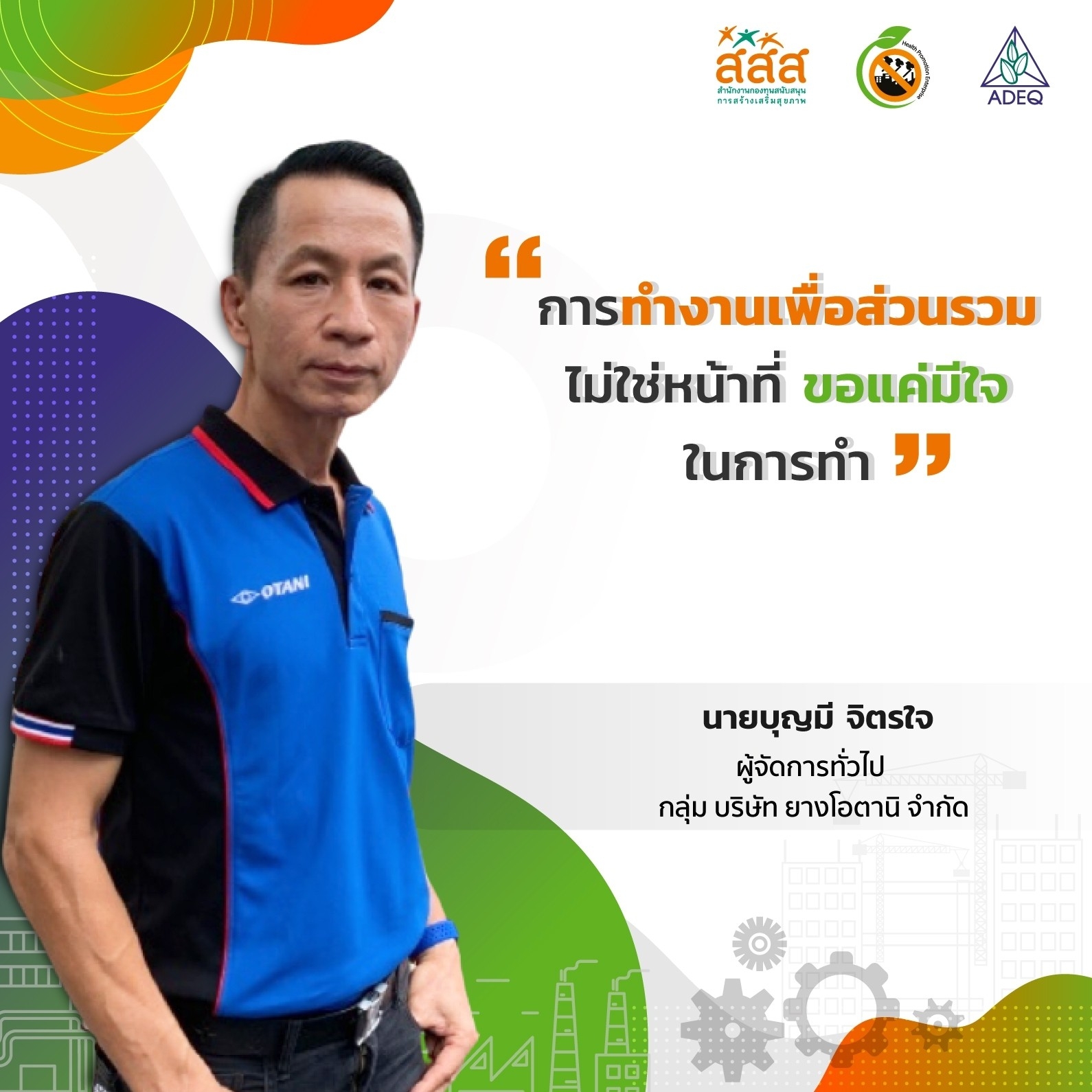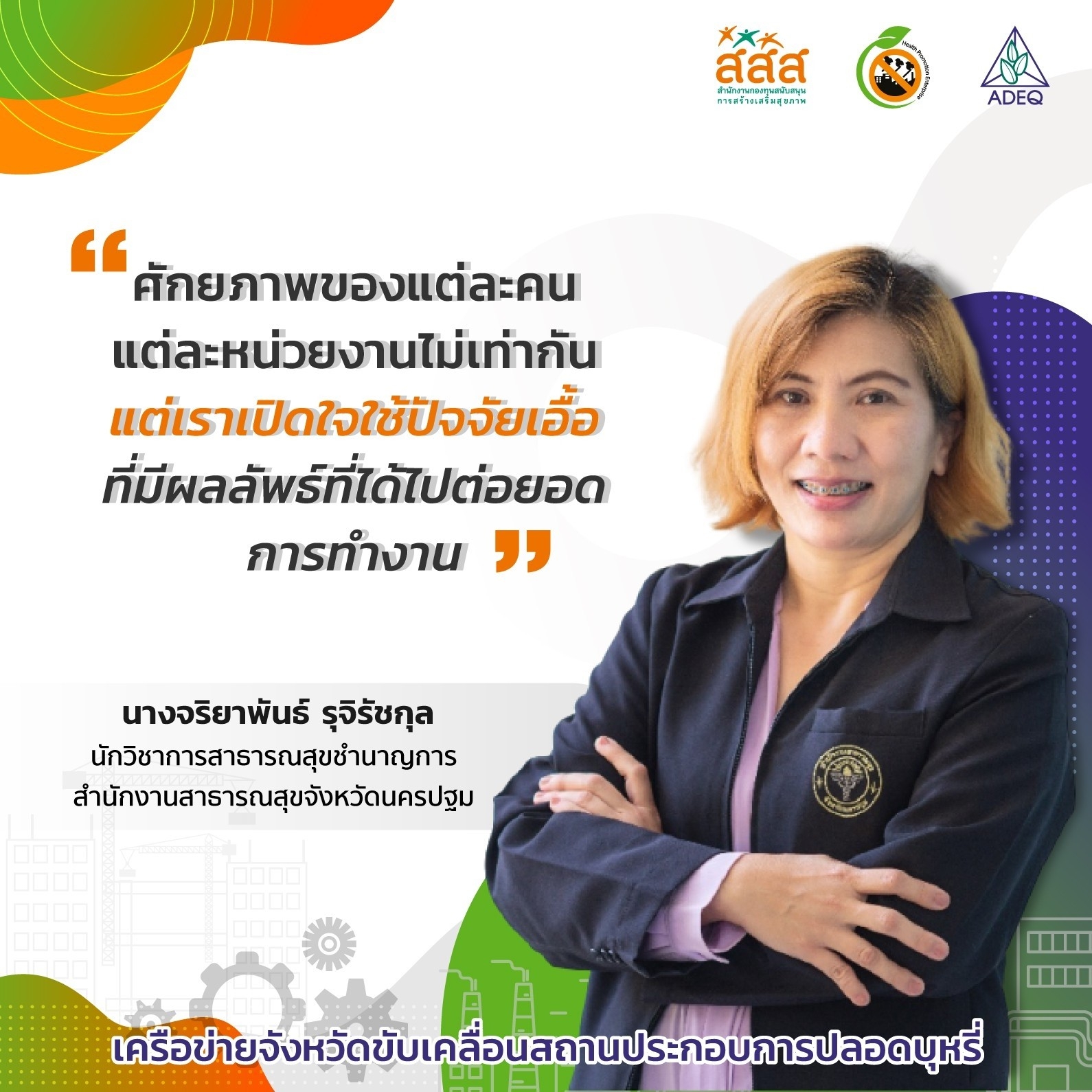 สมาคมพัฒนาคุณภาพสิ่งแวดล้อม ได้ดำเนินงานโครงการส่งเสริมการขยายฐานการสร้างเสริมสุขภาพในสถานประกอบการ ที่รับงบประมาณสนับสนุนจากสำนักงานกองทุนสนับสนุนการสร้างเสริมสุขภาพ (สสส.) เพื่อส่งเสริมและสนับสนุนให้เกิดเครือข่ายขับเคลื่อนสถานประกอบการสร้างเสริมสุขภาพในทั้งในรูปแบบจังหวัด และสถานประกอบการ ด้วยการสานพลังนำกลไกสนับสนุนต่างๆที่เกี่ยวข้องมาร่วมสร้างปัจจัยเอื้อในการขยายฐานการสร้างเสริมสุขภาพในสถานประกอบการ โดยออกแบบให้มีการดำเนินงานที่ประกอบด้วยการทำกิจกรรมต่างๆ ที่สนับสนุนซึ่งกันและกัน ประกอบด้วยกิจกรรมพัฒนาเครือข่ายขับเคลื่อนการสร้างเสริมสุขภาพในสถานประกอบการระดับพื้นที่ และ กิจกรรมส่งเสริมและสนับสนุนการสร้างเสริมสุขภาพในสถานประกอบการ ซึ่งจากการดำเนินงานที่ผ่านมาตั้งแต่ วันที่ 1 ตุลาคม 2561 จนถึงปัจจุบัน ทำให้เกิดการบูรณาการดำเนินงานสร้างเสริมสุขภาพในสถานประกอบการ ทั้งเชิงพื้นที่และกลไกต่างๆ ดังนั้นเพื่อเป็นการสร้างขวัญและกำลังใจให้กับหน่วยงาน องค์กร บุคคลที่ร่วมสนับสนุน ร่วมดำเนินงาน จนประสบความสำเร็จในการคุ้มครองสุขภาพของวัยแรงงานในสถานประกอบการ โครงการฯจึงได้จัดให้มีการประกาศเกียรติคุณเครือข่าย บุคลากรด้านสุขภาพและสถานประกอบการขึ้น ในงานมหกรรมสถานประกอบการสร้างเสริมสุขภาพ: สานพลัง เสริมแรง ขับเคลื่อนสถานประกอบการสร้างเสริมสุขภาพ เพื่อบ่งบอกถึงความสำคัญของการดำเนินงานสร้างเสริมสุขภาพของกลุ่มวัยทำงานในสถานประกอบการให้ประสบความสำเร็จ ยั่งยืน อย่างทั่วถึงต้องอาศัยการทำงานแบบมีส่วนร่วมทั้งภาครัฐ ภาคเอกชน วิชาการและสังคมที่เข้ามาร่วมคิด ร่วมทำ บนเป้าหมายร่วมเดียวกัน
